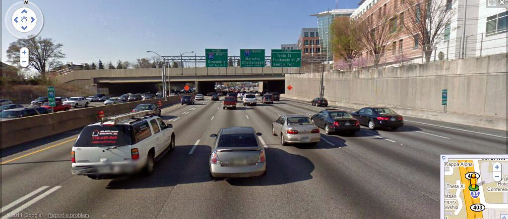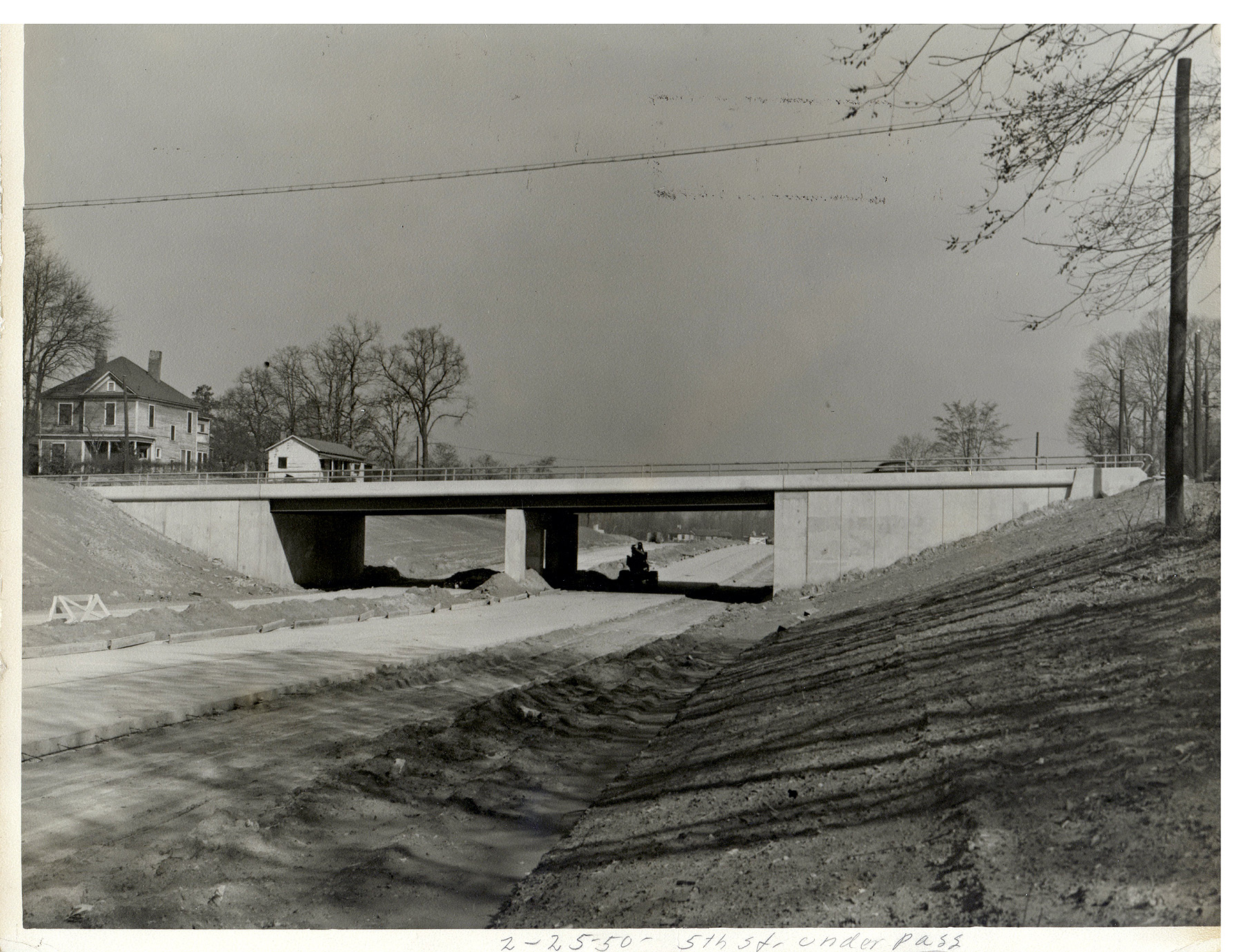 This picture, dated 02/25/1950, shows what would eventually become known as the Downtown Connector while it was still under construction. We're looking north, toward the Fifth Street bridge. A 1948 aerial photo showing this massive project can be seen here. Photo courtesy of the Georgia Dept. Of Transportation - Dept. Of Environmental Services.