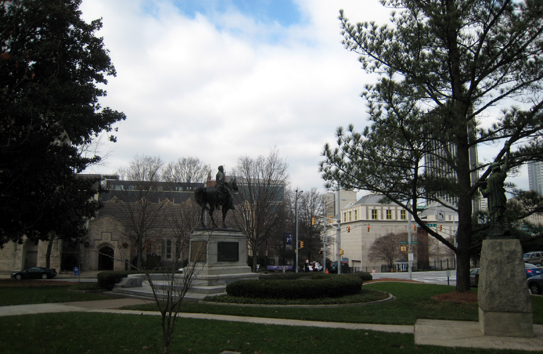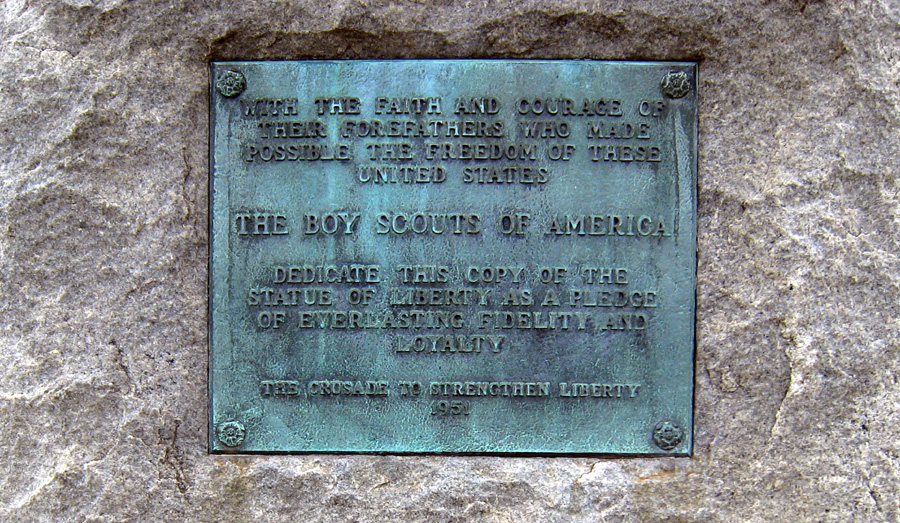 The postcard below shows two of the statues on the northwest corner of the lawn of the Georgia Capitol. On the left is the John Gordon statue and on the right is a replica of the Statue Of Liberty, which was a gift from the Boy Scouts of America.