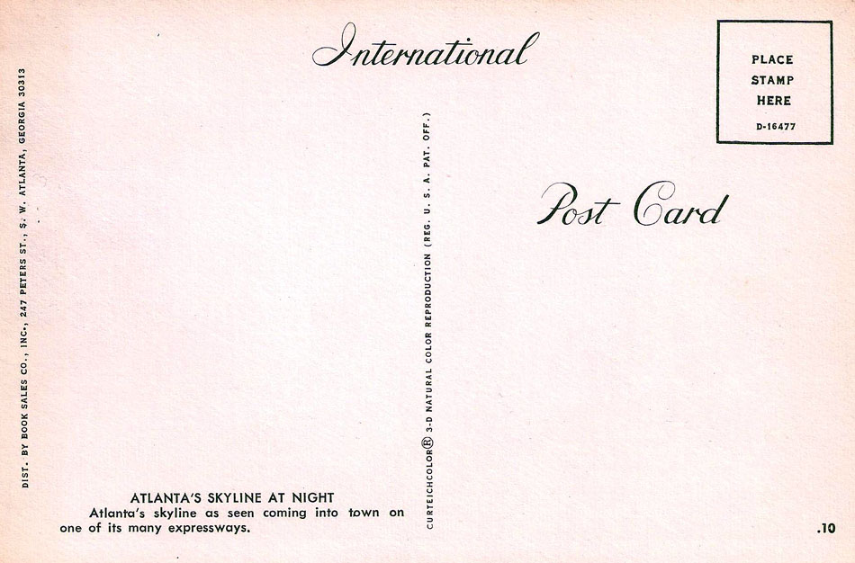 Yes, it's already time for another skyline-at-twilight postcard. This one looks to me like it probably dates to 1967, though 1968 is also a possibility. I say that because the Equitable Building, visible on the left side of the photo, which opened in 1968, was still under construction.