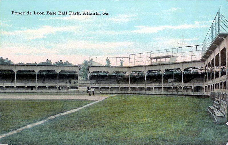 Postcard of the long gone Ponce de Leon Ball Park, where the minor league baseball team the Atlanta Crackers played their home games.   Ponce de Leon Avenue is visible in the upper left corner of the postcard.