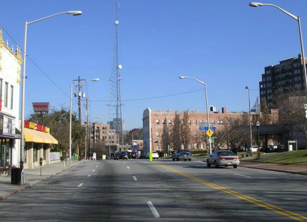 Roswell Road looking north from right in front of what is now the Roxy Theatre. Date: