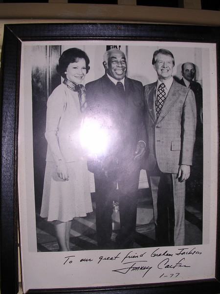BACK TO GRAHAM JACKSON THUMBNAILS Also seen hanging on the wall at Pittypat's Porch is this photo, showing Graham Jackson with President Jimmy Carter and his wife Rosalynn. On November 30, 1971 Georgia governor Jimmy Carter named Graham W. Jackson the "Official Musician of the State of Georgia."