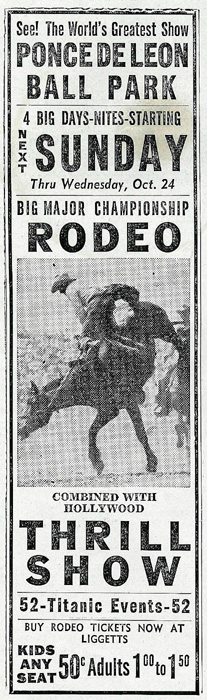 It's pretty hard to believe, but the Ponce de Leon Ball Park, the home of minor league baseball team the Atlanta Crackers, used to host rodeos on occasion. The one advertised here took place in October, 1945. Click here to see an ad for a football game at the Ponce de Leon Ball Park between the Atlanta Spartans and the Pittsburgh Ironmen. Soul music extravaganza at the Ponce de Leon Ball Park