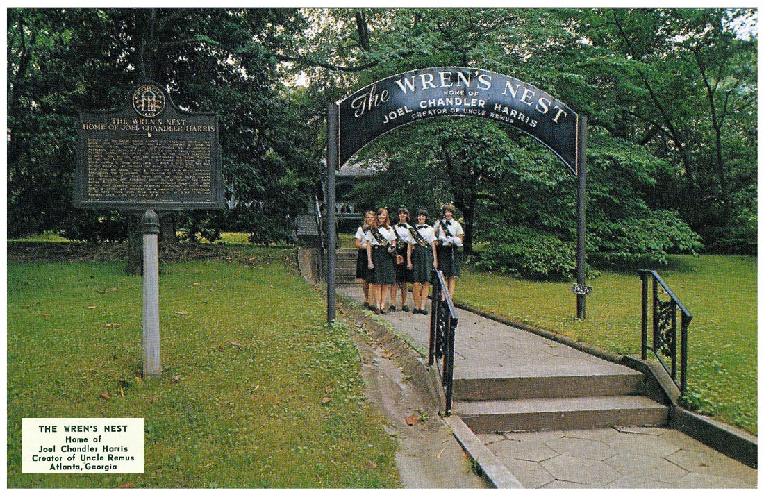Here is a postcard, circa 1970 or so, of the Wren's Nest - home of author, folklorist and newspaperman Joel Chandler Harris, best remembered for his Uncle Remus stories. Harris (a white man) and the Uncle Remus stories have a complicated and controversial history due to the fact that the tales revolve around a former slave, speaking in dialect, "entertaining a white boy with African fables about conniving critters", as writer Jim Auchmutey put it in an informative 2006 Atlanta Journal-Constitution article.