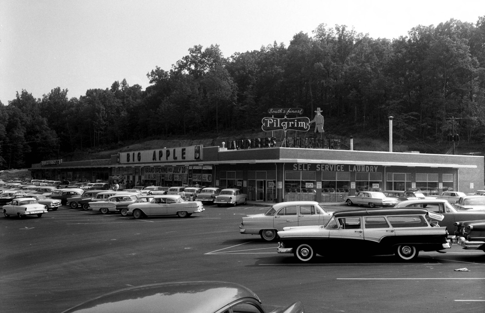 This 1960 photo shows the Big Apple grocery store opening in the shopping center at the corner of Briarcliff and Clairmont Roads. The center still stands, though about half of it was torn down not too long ago to clear the way for the Quik Trip gas station/convenience store visible in the lower photo. By the way, can we penalize them for that dopey spelling? Google map