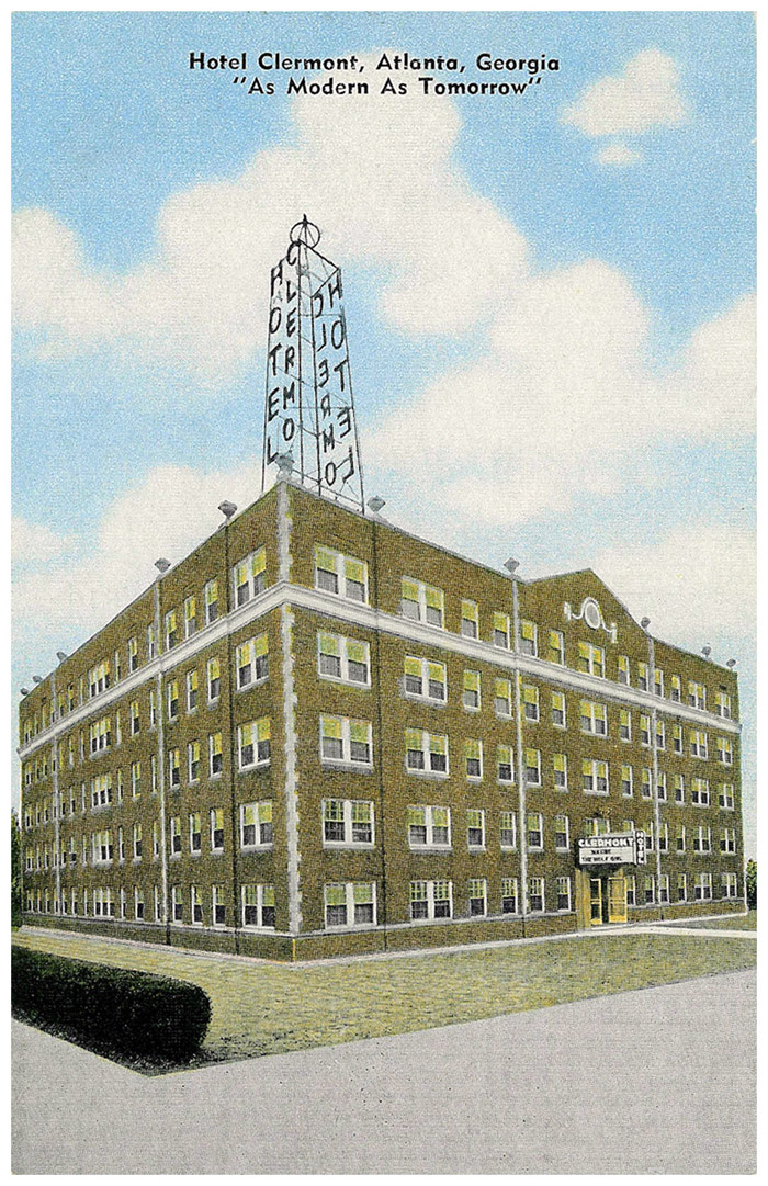 The Hotel Clermont (more frequently referred to as the Clermont Hotel or simply The Clermont), as seen on an undated postcard. The building dates back to 1924, when it opened as an apartment house before its conversion to a hotel. In December 2009, Fulton County health inspectors ordered the hotel closed after encountering dirty linen, old bedding, mold growing on the walls and black water spilling from some of the faucets, according to an AJC article. The building is currently for sale if I'm not mistaken.