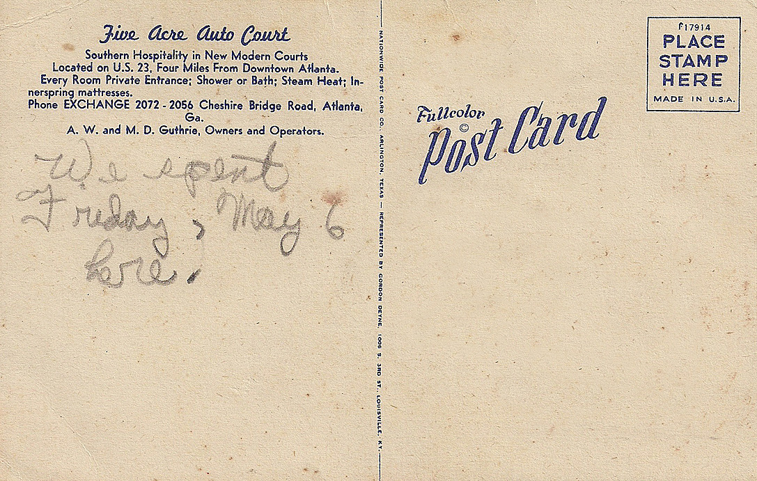 roadside motel at 2056 Cheshire Bridge Road in the 1950s and