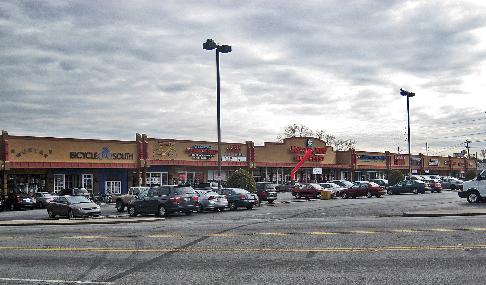 Though it's undated, this photo of the shopping center at the NE corner of Clairmont Road and North Decatur Road was probably taken in the mid-1950s. It comes from the very thoughtful Leonard Thibadeau, who has shared several great period photos with us recently. Google map