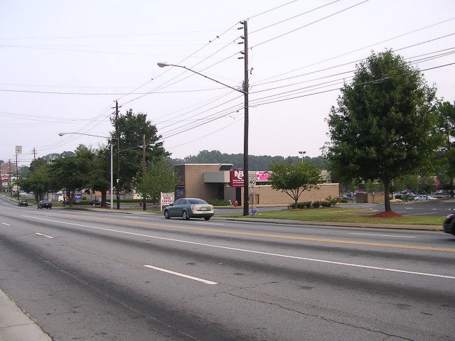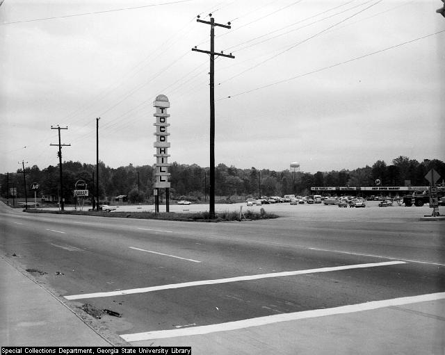 Toco Hill Shopping Center on North Druid Hills Road. Forty some years have made quite a difference at this sprawling DeKalb County shopping center. One factor that has made a huge visual impact is, obviously, the practice of sticking new buildings in the parking lot adding immeasurably to the visual clutter. Add a host of new trees (hey, all changes aren't necessarily bad!) and things look a great deal different. On a side note, I'm told by a lifelong Atlanta resident who usually knows what he's talking about that TOCO is an informal abbreviation for "top of the county." Date: April 1961