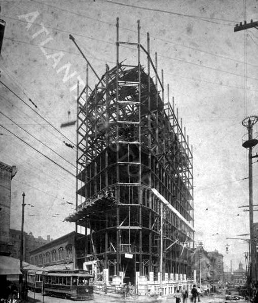 Below: Circa 1901, the Century Building under construction. As mentioned above, in 1911 it was renamed the Atlanta National Bank. This image was borrowed from the Atlanta History Center.