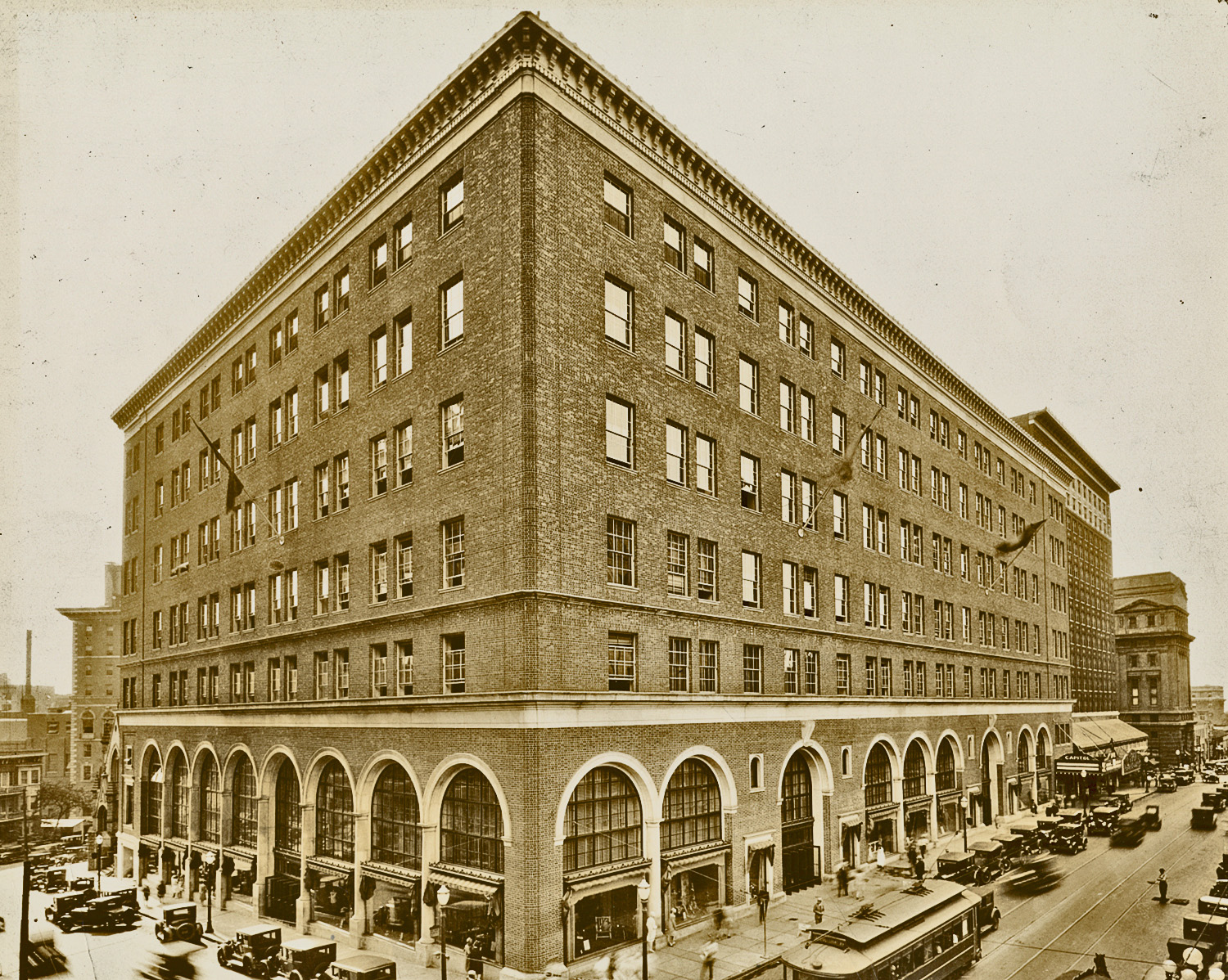 The Davison's department store building was completed in 1927 and still stands at the northwest corner of Peachtree and Ellis Streets. In the 1980s, Davison's changed its name to Macy's and when this store closed in 2003, it was the last remaining department store in downtown. Traditionally, the address for this store was 180 Peachtree Street, but from the looks of the sign attached to the side of the building in the lower photo, taken in June 2013, this address has shifted to 200 Peachtree Street. That's a fairly recent change; a 2005 photo, visible on the "Next Photo" page, shows an almost identical sign with 180 on it.