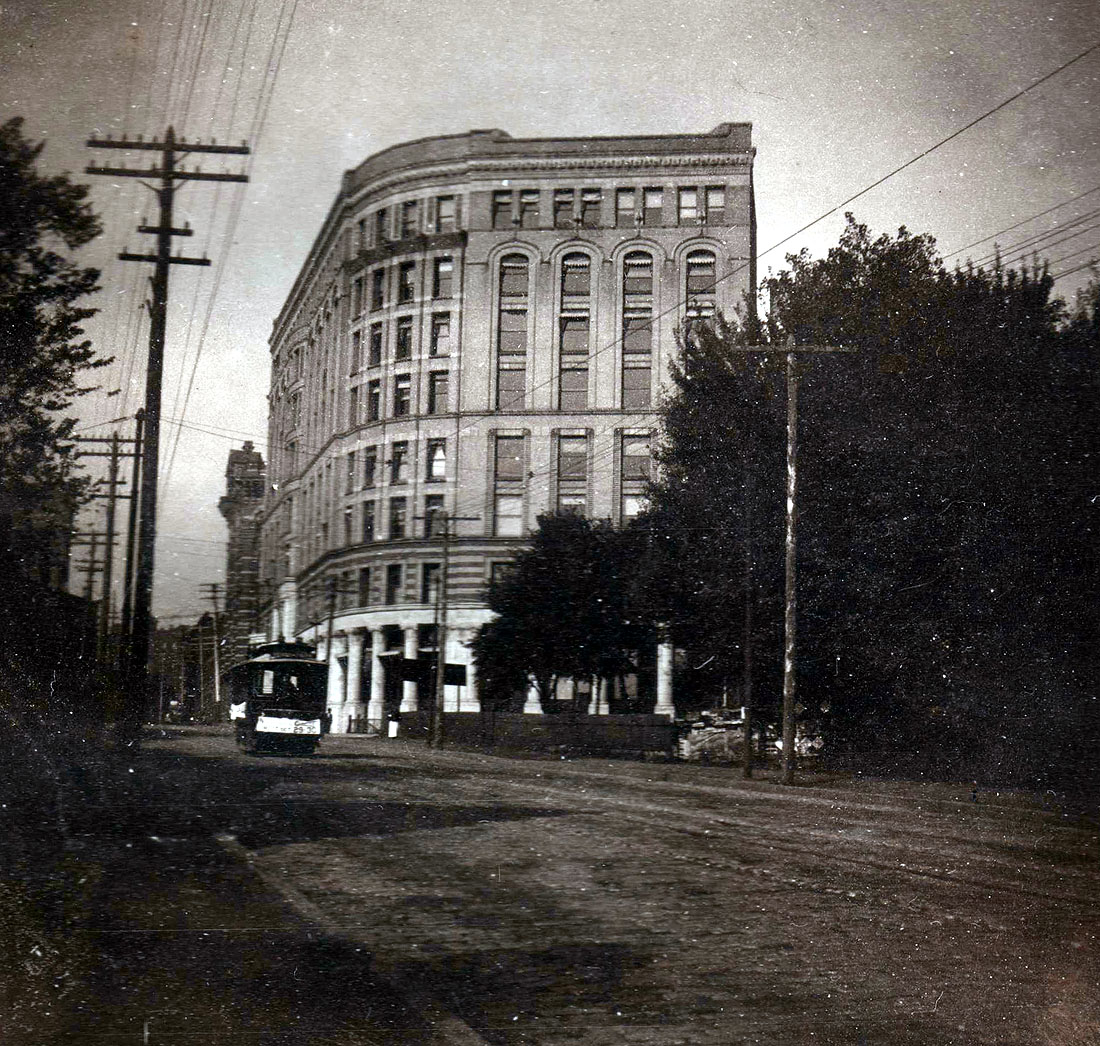 Seen here is the Equitable Building (30 - 44 Edgewood Avenue) at Five Points in downtown Atlanta. Completed in 1892, the building was torn down in 1971. In 1968, a different Equitable Building was constructed at 100 Peachtree Street, a couple blocks to the north.