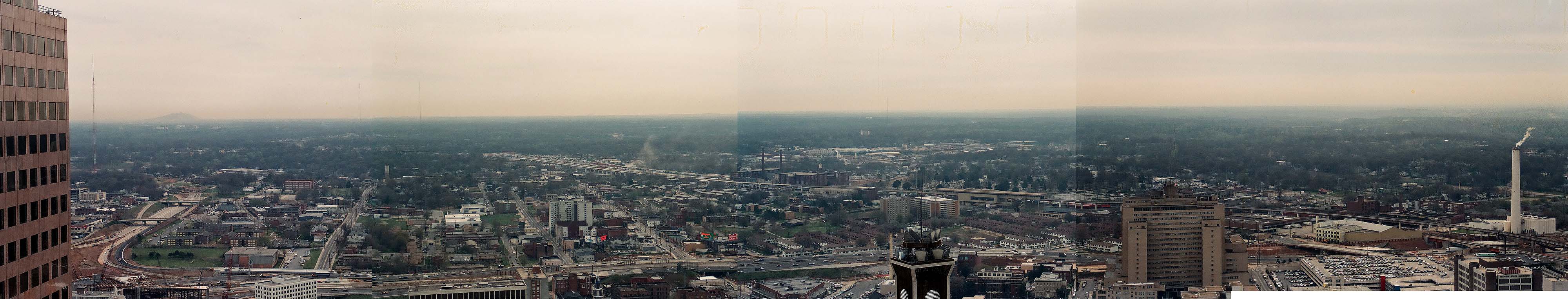 Here's another contribution from reader Roger O'Kelley, this one a panoramic view looking eastward from the top of the Equitable Building. The image was made by stitching together, somewhat imperfectly I admit, three separate pictures taken in 1984.