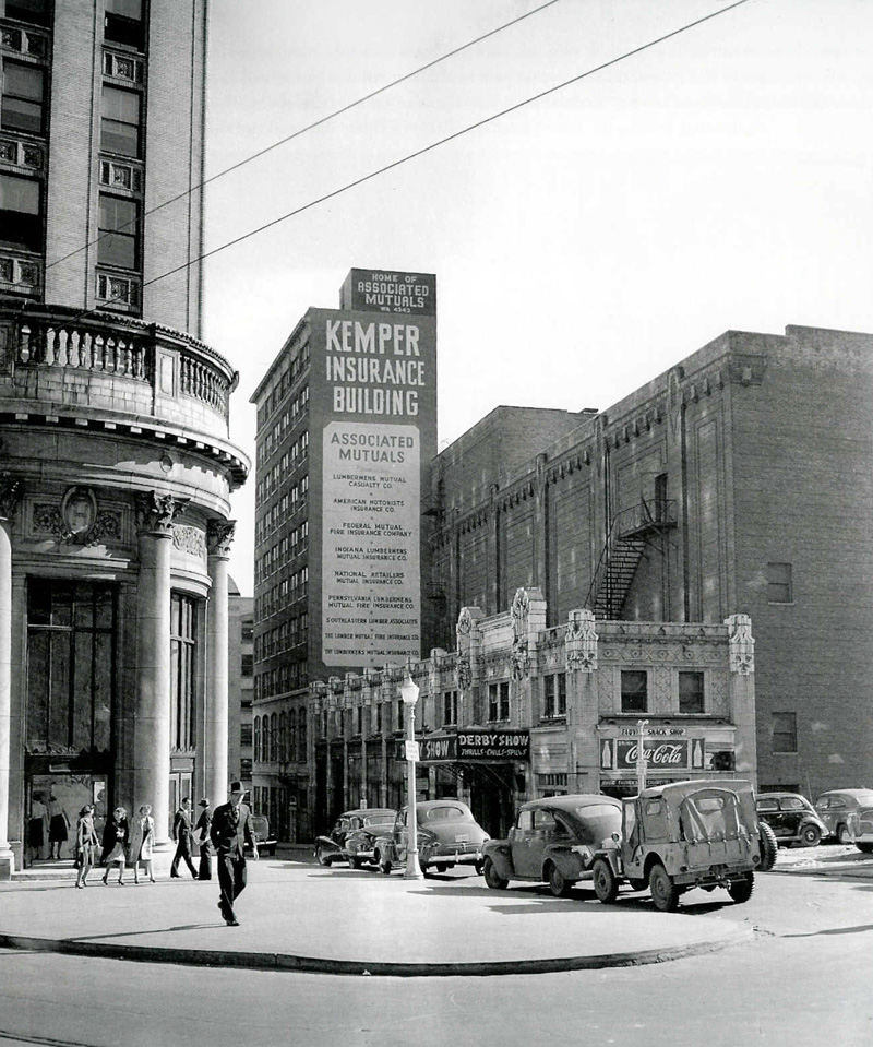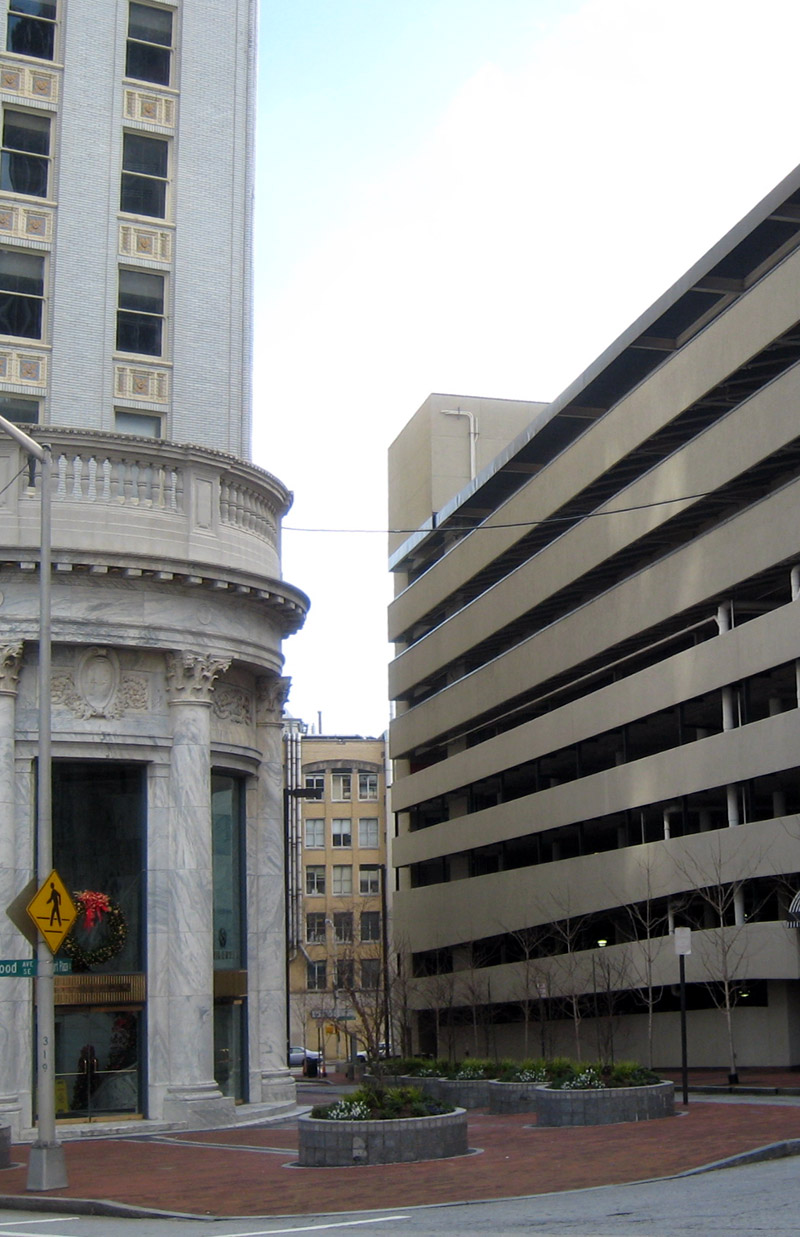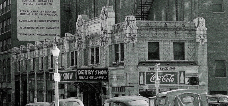 Seen below is a circa 1940 photograph showing the intersection of Edgewood Avenue and Exchange Place (now known as Hurt Plaza), a one-block long street that connected Edgewood with Ivy Street (now known as Peachtree Center Avenue). Scroll down to the bottom of the page to see a close up of the marquee that promises a Derby Show featuring thrills, spills and chills. Fittingly, this occurred right across the street from the Hurt Building, the entrance to which is visible on the left.
