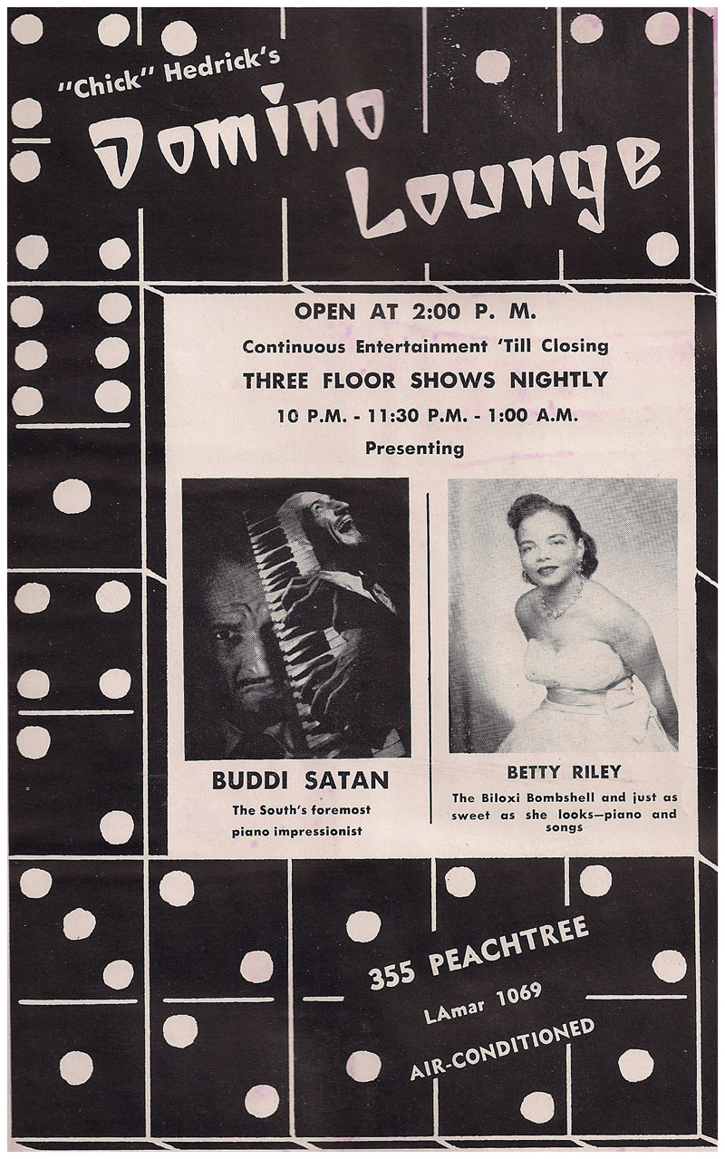 This week at the Imperial Hotel's Domino Lounge nightclub: Betty Riley, The Biloxi Bombshell and Buddi Satan.