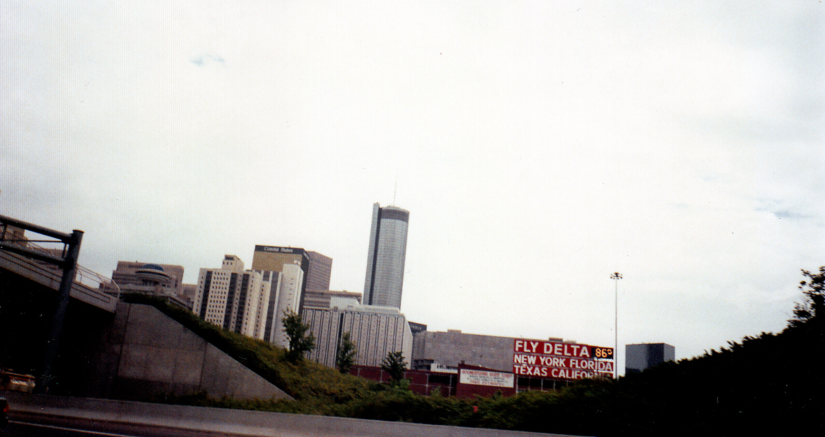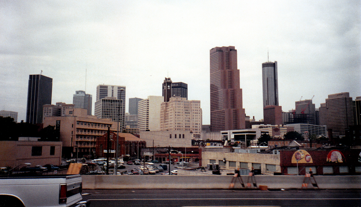 Below that are two 1989 photos of the downtown skyline taken from a car navigating the Downtown Connector, on its way to the airport.