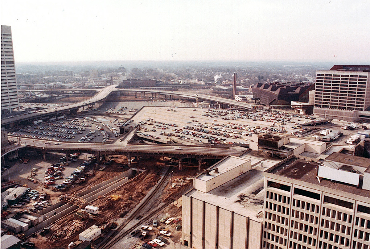 This 1978 photo, taken by Dennis Degan from the top of the First Federal Bank building at 40 Marietta St., shows the western edge of the Five Points MARTA station construction project. The station, which opened in December 1979, has its own Wikipedia page here. Thanks go out to Dennis for posting this photo on Flickr and for allowing me to share it here.