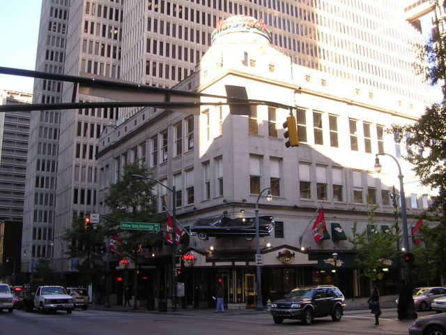 Date: 11/05/04 I recently (Feb. 2010) noticed that the 1959 Cadillac has been removed from the Hard Rock Cafe's exterior. Wonder when that happened. It was replaced by a traditional Hard Rock Cafe guitar-shaped sign.