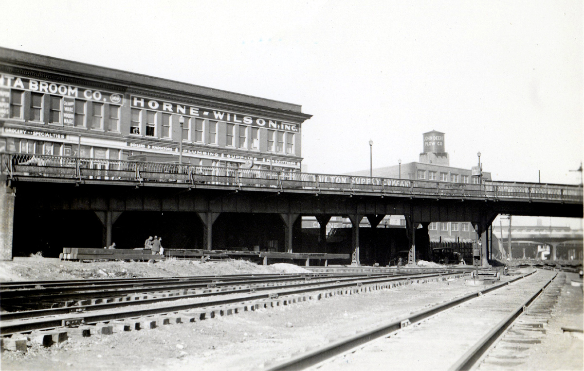 This undated photo shows the Peters Street bridge that leads from downtown to what's known these days as the Castleberry Hill neighborhood. The former Fulton Supply Company sign seen near the middle of the top photo still still exists and is partially visible in the lower picture. Google map
