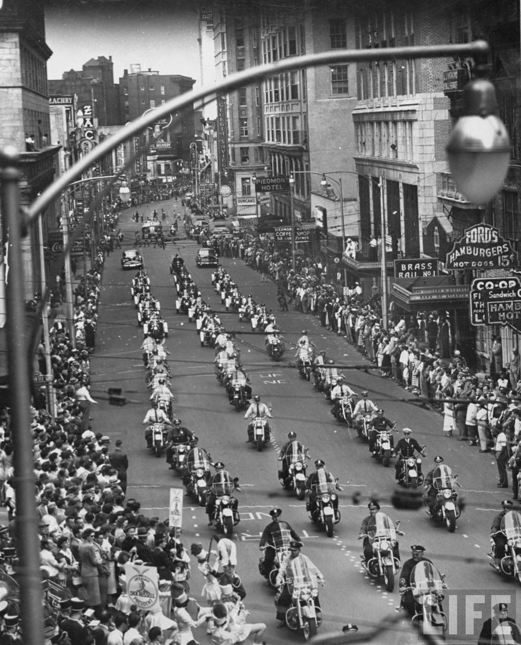 This photo (from the LIFE magazine archives) shows Senator Richard B. Russell at a 1952 event on Peachtree Street. This was during his unsuccessful campaign for President. Russell, a Democrat, came in behind Senator Estes Kefauver of Tennessee and Governor Adlai Stevenson of Illinois. In the eventual election, Stevenson lost to Republican Dwight Eisenhower.