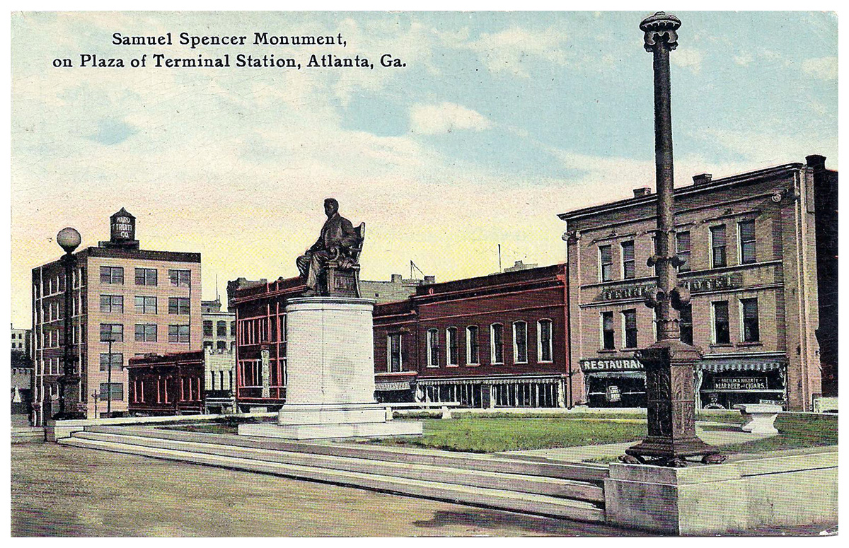 The Samuel Spencer monument, which was located just to the east of Terminal Station's front doors, paid tribute to the founder of the Southern Railway. Spencer was born in 1847 and died 59 years later in a 1906 train collision in Virginia.