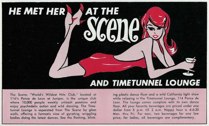 Though the words "go go" appear nowhere in this ad, I nevertheless fell that it should be included here in the go-go section due to the ad copy concerning "psychedelic action" and "wild dancing." Date: 02/26/68 114 Ponce de Leon Blvd. as it appears today.
