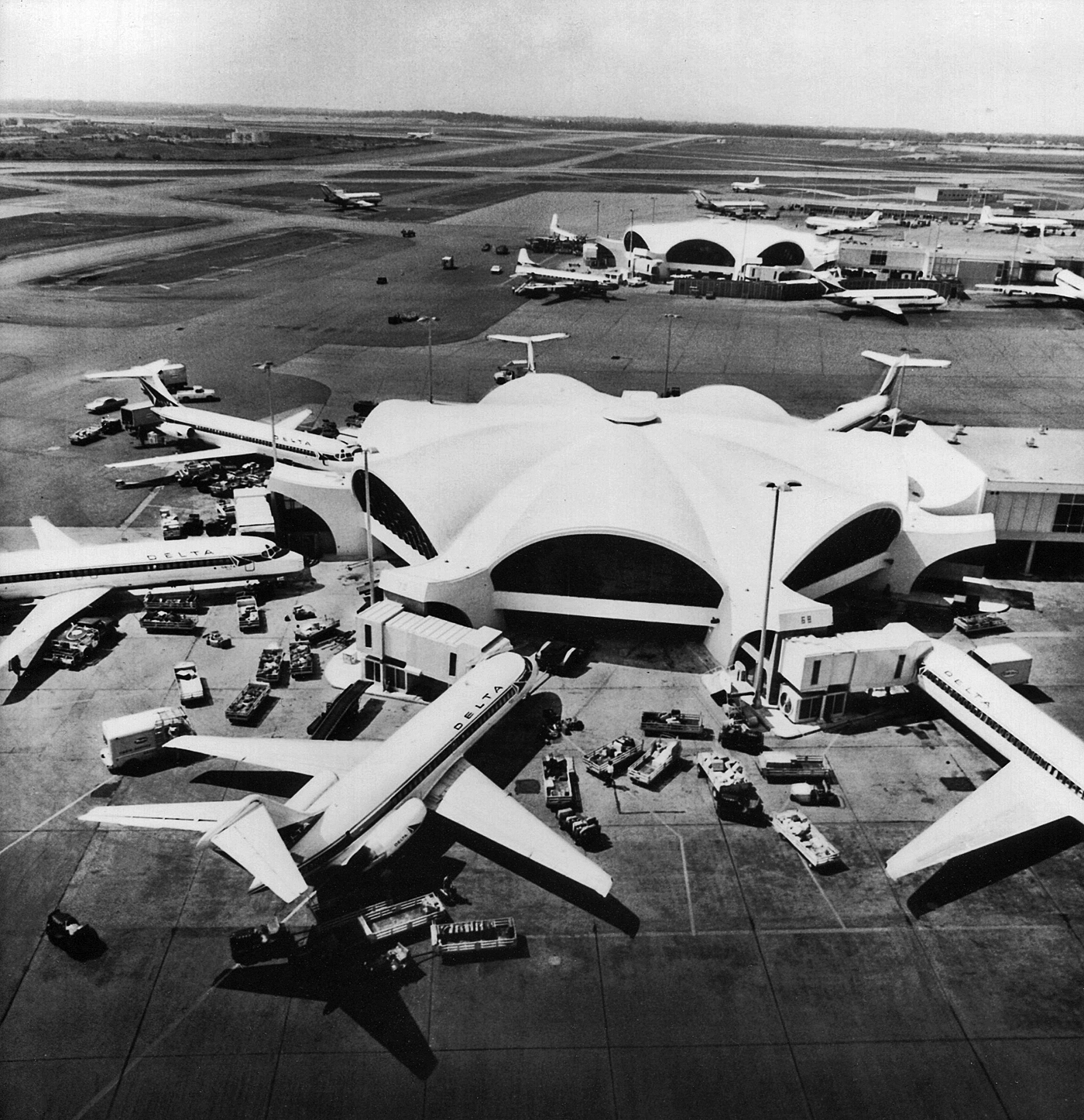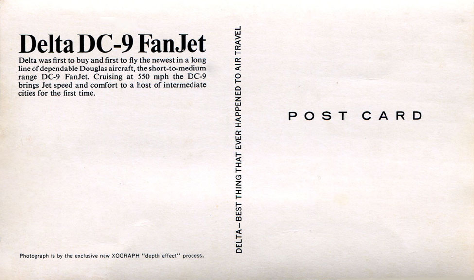 Below: A postcard featuring a 1965 photo, published by the Delta Museum in 2002. If you look in the background, you can spot signs for the space-age Gulf station and the Air Host Inn.