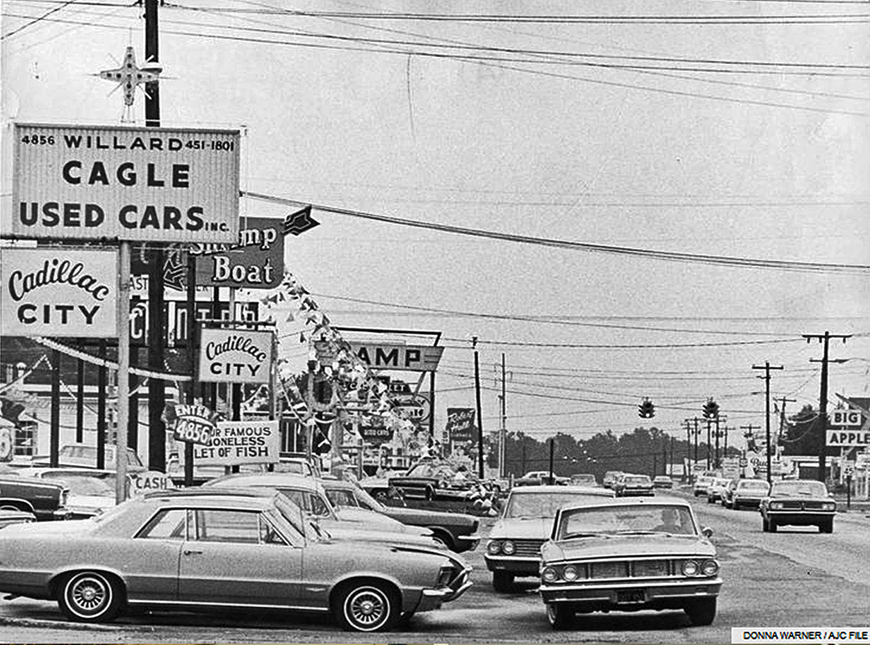 This 1966 photo shows Buford Highway, positively buzzing with activity and snazzy signs, looking north toward its intersection with Chamblee Tucker Road. The vintage photo appears here courtesy of the Atlanta Journal Constitution, who included it recently in a batch of photos examining Atlanta's roadways.