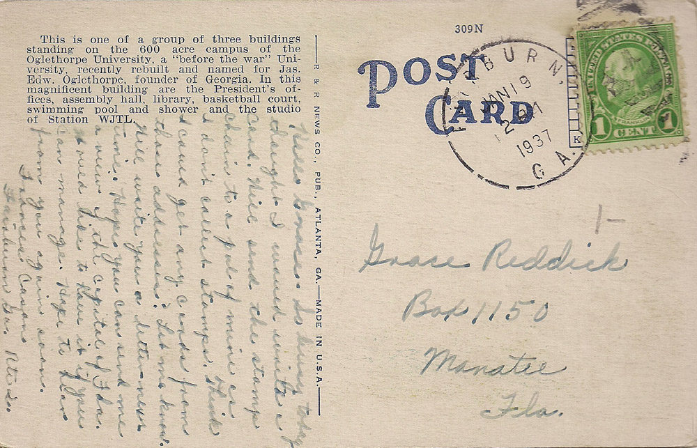 Lupton Hall is a 1920 stone structure on the grounds of Oglethorpe University named for a Coca-Cola bottler from Chattanooga, John Thomas Lupton. Then the building housed the president's office, the library, a basketball court, a swimming pool and the studio of WJTL (also named for Lupton), the university's radio station which broadcast for several years beginning in 1931 before shutting down. Incidentally, Lupton Hall stills houses the president's office, but I believe all the other facilities mentioned above have relocated elsewhere on the campus. Google map