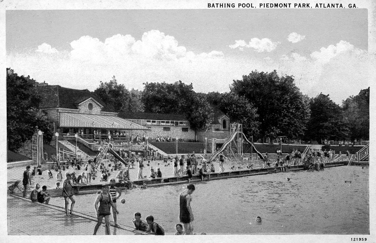 The Piedmont Park Bathing Pool, as seen on a postcard of indeterminate age. This is actually what is today (and maybe then, too) known as Lake Clara Meer.