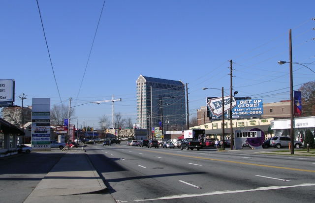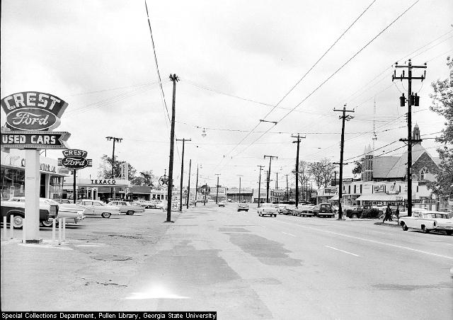 Looking southwest along Peachtree Street in Buckhead. Date: 1961