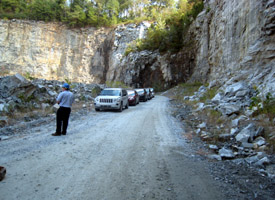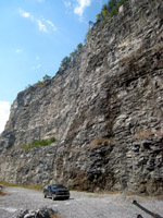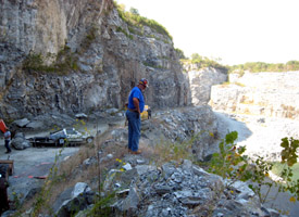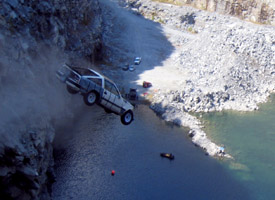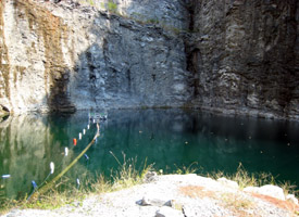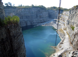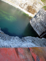Let's start with the best. Due to pure luck, on the day I stopped by a spectacular stunt was planned, which can be seen in the first photo below. As part of a test for an upcoming film shoot, a car was being propelled by an air rocket (is that the right term?) over the edge of the road and into the beautiful green water far below. The title of the movie is Fast Five (aka Fast And Furious Part 5) and will star Vin Diesel, Dwayne Johnson and Ludicris. Also worth noting is that the television series The Walking Dead, which will debut on AMC on 10/31, shot extensively at the quarry recently.