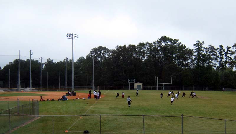 This is the football field that Field stormed through in the Trans Am. The scene was shot at Redan Park, at 1745 Phillips Road in Lithonia. Google map